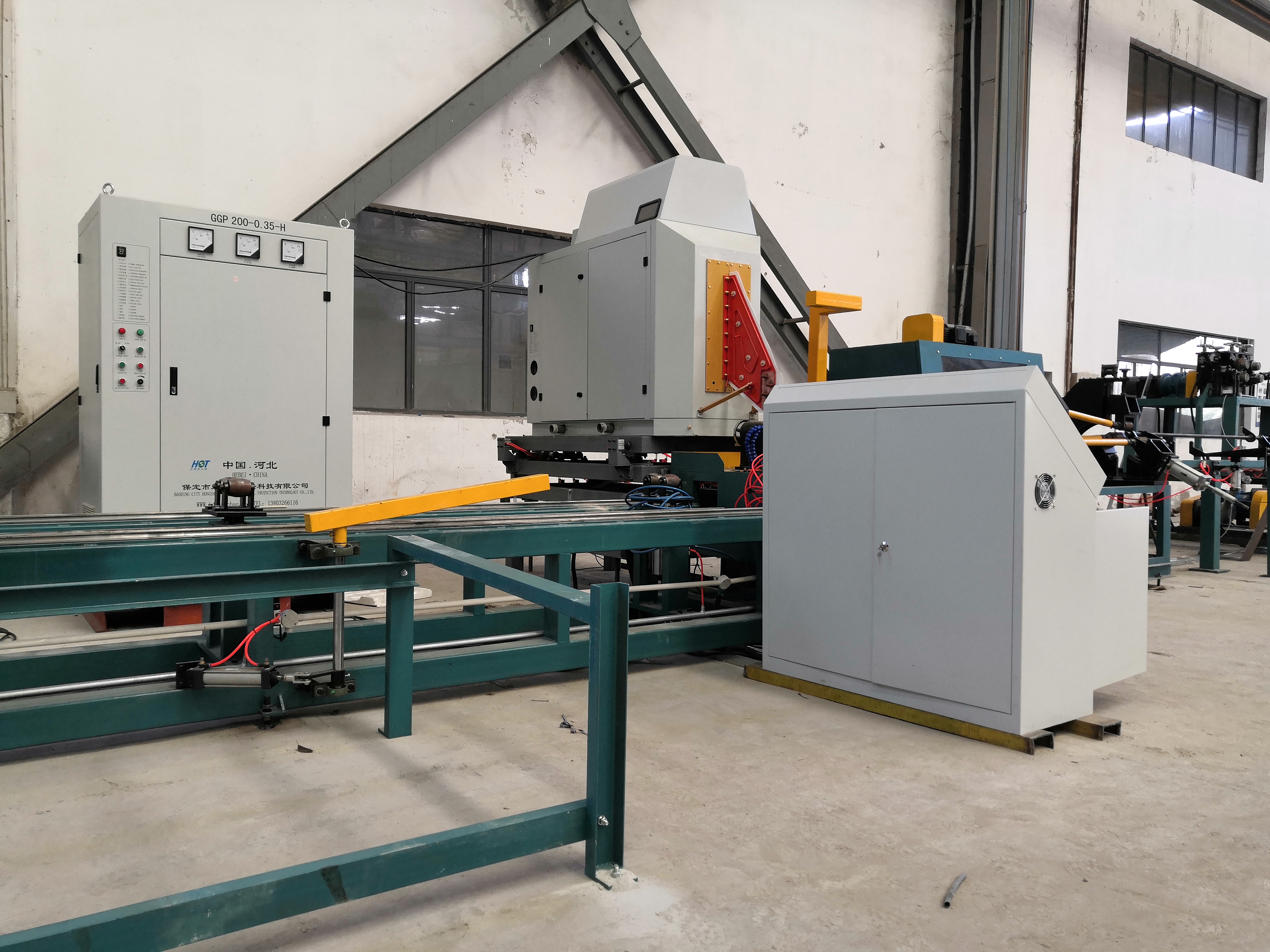 保定市宏順泰環??萍加邢薰緞摿⒂?989年,位于河北省的保定市競秀工業開發區,毗鄰北京,天津,交通運輸十分便捷,地理得天獨厚。 本公司是生產高頻(激光)螺旋翅片管焊接設備、高頻(中頻)縱向鰭片管焊接設備、H型翅片管中頻焊接設備、高頻焊管成套設備以及新研發的高頻(激光)焊接橢圓形鋼管翅片管焊接設備的專業廠家。目前,公司設有翅片管焊接設備制造部和翅片管焊接制造部。翅片管焊接制造部有高頻翅片管焊接生產線2條,年產翅片管2000噸;激光焊接橢圓形鋼管翅片管生產線3條,高頻焊接橢圓形鋼管翅片管生產線2條,年產橢圓形鋼管翅片管1000噸。 本公司取眾家之優點,專業制造高頻焊片管成套設備,高頻焊鰭片管成套設備,固態高頻焊管設備,電子管高頻設備、高頻設備空冷器、余熱回收裝置、高頻焊管生產線、電腦數控飛鋸、磨齒機等系列設備。其中高頻焊翅片機組和高頻焊鰭片管成套設備是我們公司自主研發的產品。我公司還可以根據用戶特殊需要,設計制作特殊要求的機械設備,來滿足用戶的使用要求。我公司系列產品得到國內新老客戶的一致好評。 “宏順泰”將以先進技術,科學實用、質量過硬的產品和周到滿意的服務,回報公司的新老用戶。“宏順泰”全體員工竭誠歡迎國內外廣大用戶光臨、合作!